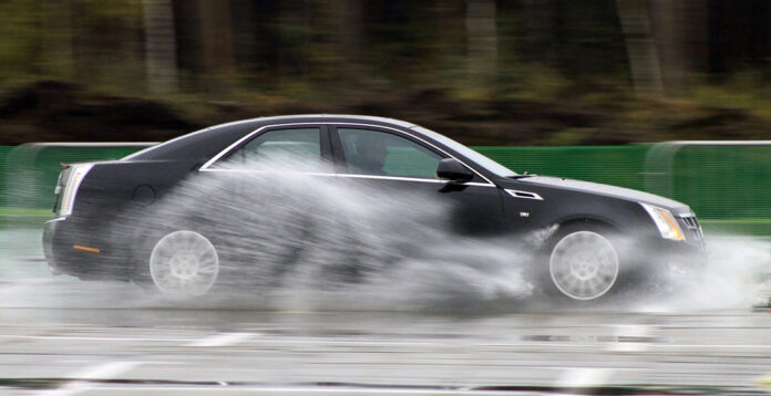 Сцепление колеса с мокрым асфальтом в два раза меньше, чем с сухой поверхностью, а сцепление с ледяной коркой еще на несколько порядков ниже. При аквапланировании же контакт протектора с дорогой отсутствует вовсе. Колесо скользит по водяной глади, при этом не реагируя на действия водителя. Возникает данный эффект при движении автомобиля по дороге, покрытой слоем воды, когда каждая покрышка выдавливает воду из пятна контакта, образуя перед собой водяной клин. В момент, когда колеса уже не в состоянии быстро освобождать зону контакта от воды, водяной вал превращается в мощный водяной клин и автомобиль «всплывает». Нажатие педали тормоза может ухудшить ситуацию, а реакция на руль будет неадекватна. Справиться с проблемой помогают шины с глубокой центральной канавкой и прорезями «навылет». Большим противодействием аквапланированию обладают шины с «елочным» рисунком протектора, например Nokian NRH 2 и аналоги. При их установке, кстати, надо быть внимательнее – такие шины, как правило, имеют направленный рисунок протектора. В любом случае при приобретении резины стоит обращать внимание на рейтинг шин.