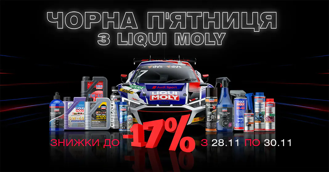 Акція діє в офіційному інтернет-магазині LIQUI MOLY, а також у магазинах партнерської мережі по всій Україні. Повний перелік точок продажу та деталі проведення Чорної п’ятниці доступні на спеціальній сторінці — там можна обрати найближчого партнера або одразу оформити замовлення онлайн.