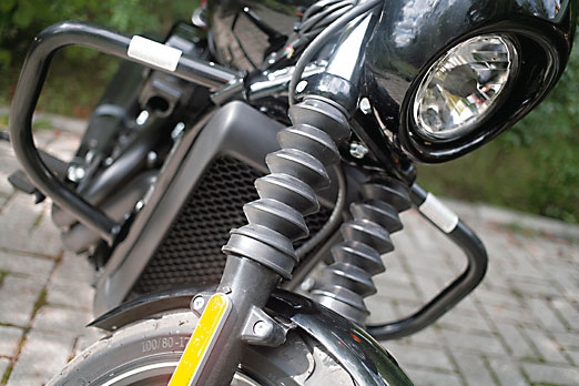 2. Чтобы переделать Street в стильный и модный скремблер, надо всего лишь поменять покрышки и еще как-нибудь укоротить глушитель. Он, кстати, здесь просто неприлично тихий!