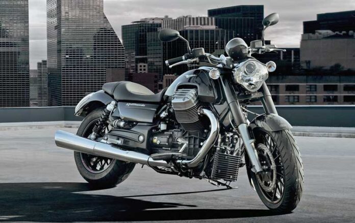 Мотоцикл очень длинный, настоящий круизер. На таком на месте не развернешься, нужно держать статус и степенно просчитывать траекторию. Ничего удивительного: моноблок двигатель-трансмиссия, пожалуй, самый тяжелый из виденных мною. Двигатель Moto Guzzi — притча во языцех. Естественно, фирменная ориентация цилиндров в виде поперечного V-Twin с углом развала 90°, по-прежнему воздушное охлаждение, но это — полностью новый двигатель объемом 1400 «кубиков», первый из целой линейки будущих моторов марки.