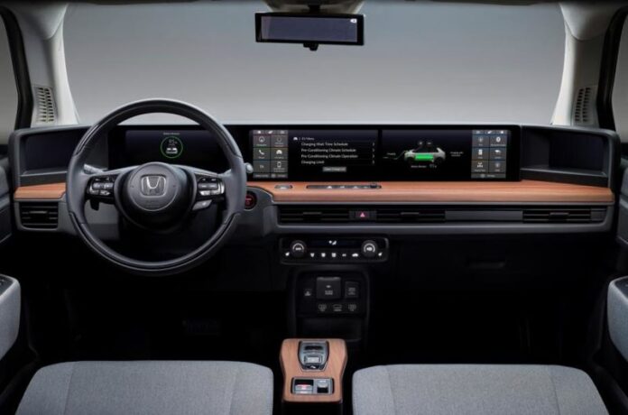 При этом бо́льшая часть панели занята двумя 12,3-дюймовыми сенсорными дисплеями, которые можно настраивать отдельно для водителя и пассажира, а переключение между приложениями происходит с помощью свайпов. Также, Honda e оснащен голосовым помощником, который, благодаря искусственному интеллекту, может самообучаться.