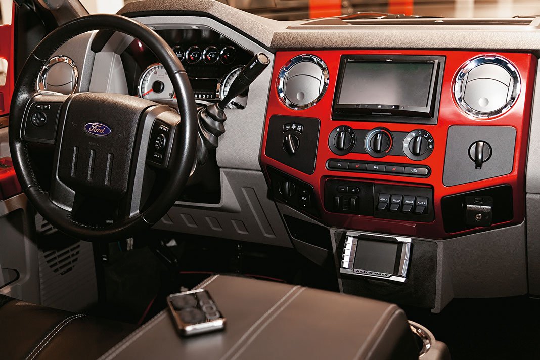 За основу конструкции был взят полноразмерный пикап Ford F-350 Super Duty с дизельным двигателем объемом 6,4 л. Как утверждают создатели, им пришлось разобрать машину до «голого кузова». Собственно, стандартным только сам кузов и остался. На него установили пневматическую подвеску от компании Kelderman, лифтованную на… довольно скромные (по американским меркам) 12 дюймов. Для справки: это больше 30 см.