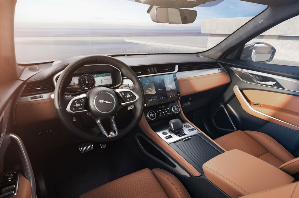 Логическим центром интерьера стал громадный тачскрин мультимедиа-системы Pivi Pro диагональю 11,4 дюйма — изогнутый, обрамленный тонкой магниевой рамкой. Новое семейство бортовой электроники дебютировало на внедорожнике Land Rover Defender, а в Ягуарах впервые появилось на электромобиле I-Pace. Новый мультимедиа-комплекс перекочевал на F-Pace вместе с полностью переработанной электронной архитектурой автомобиля.