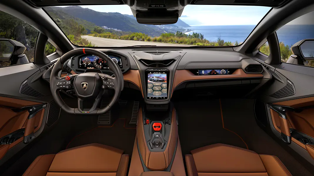 У салоні Lamborghini Temerario немає нічого примітного, але увага до деталей бездоганна. У стандартне оснащення входять комфортні крісла з купою електрорегулювань, підігрівом та вентиляцією, а опційно пропонуються легші та жорсткіші крісла на вуглепластикових каркасах. На передній панелі є три екрани: приладовий 12,3-дюймовий, настроювально-мультимедійний 8,4-дюймовий по центру і вузька 9,1-дюймова смужка для переднього пасажира, яка дублює частину показань з панелі приладів.