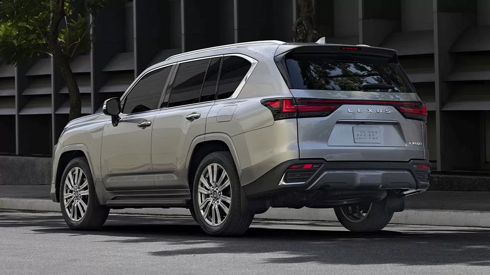 Якщо Toyota Land Cruiser 300 вже встиг отримати чимало критики від потенційних покупців за не надто брутальну зовнішність, то новий Lexus LX зберіг агресію попередника, хоча в цілому його форми стали трохи більш округлими при майже незмінних зовнішніх габаритах і колісній базі (2850 мм). Гігантська радіаторна решітка стала більш об’ємною (тривимірною) і виглядає масивніше, ніж у минулого LX. Задні ліхтарі більш хитромудрі, ніж у Land Cruiser, і з’єднані світлодіодною перемичкою, а «загострені» багажні віконця і більш похила корма роблять профіль Lexus LX більш динамічним, ніж у LC 300.