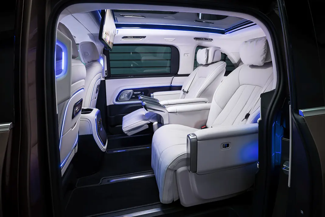 У салоні Mercedes-Benz VLE може бути 6, 7 або 8 місць, доступні кілька варіантів крісел різного рівня комфортності. Частину крісел можна демонтувати та залишити в гаражі, для зручності їхнього переміщення передбачені коліщатка. По салону крісла переміщаються за допомогою електроприводів, причому керувати ними можна дистанційно через спеціальний додаток на смартфоні. Об’єм багажника залежно від кількості та розташування сидінь варіюється в діапазоні від 795 до 4078 л. Скло багажних дверей можна відчиняти незалежно від самих дверей.