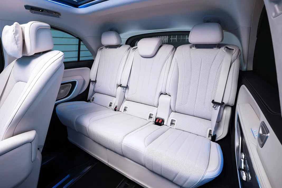 Передня панель має типове мерседесівське табло MBUX Superscreen, приладовий екран тут 10,25-дюймовий, центральний мультимедійний – 14-дюймовий, а для переднього пасажира як опція доступний власний розважальний 14-дюймовий екран. Опція для водія – проєкційний 23,1-дюймовий екран. Між передніми сидіннями може бути порожньо або високий центральний тунель. Для задніх пасажирів передбачено 31,3-дюймовий розважальний екран на стелі, на ньому можна навіть запускати відеоігри. Топова аудіосистема Burmester налічує 22 динаміки. Електронних помічників водія буде багато, але серед них не буде автопілота 3 рівня – Mercedes-Benz та BMW від нього дружно відмовилися.