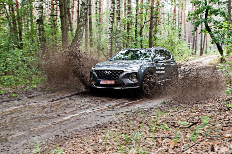 Перед легким бездорожьем Santa Fe не пасует – система полного привода HTRAC своевременно распределяет момент между осями вплоть до 50:50. В лес на пикник можно отправляться без опасений.