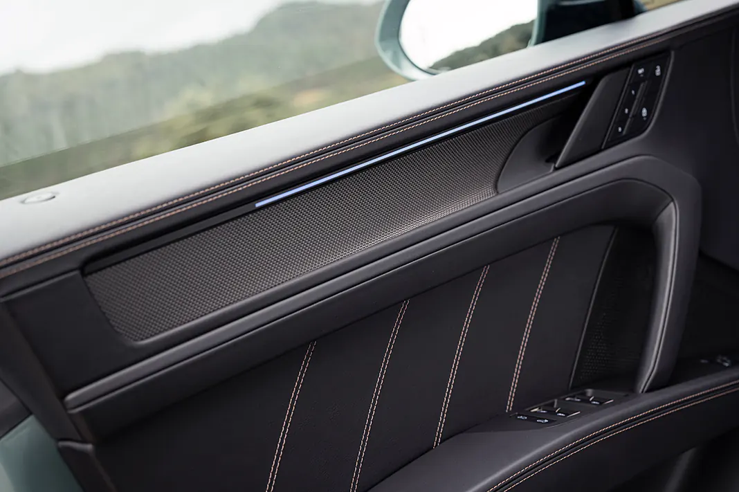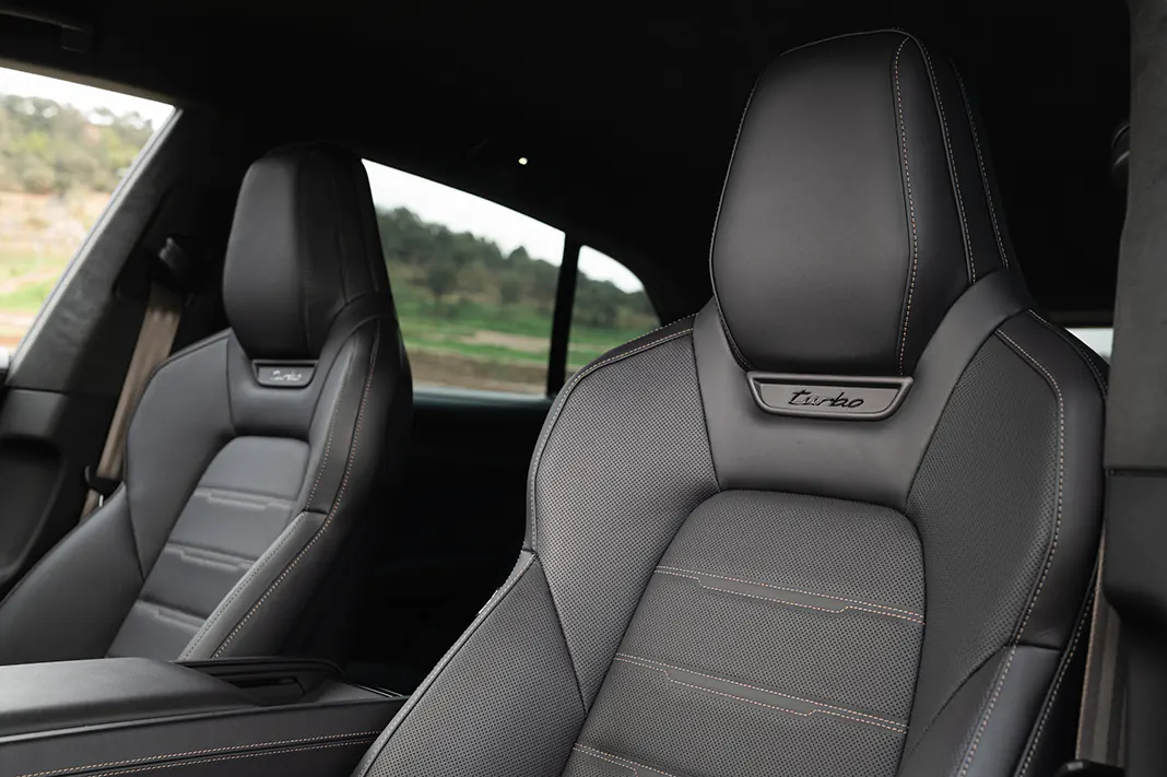 А позаду – більше місця для ніг, ніж у версії з ДВЗ. Диван доволі жорсткий, проте він оснащений електрорегулюваннями, підігрівом та вентиляцією. Шторки на вікна також мають електропривід, а кліматична система вміє нагрівати не лише сидіння, а й поверхні, яких торкаються пасажири – підлокітники та дверні панелі. Тобто затишну подорож на задньому дивані електричного Cayenne можна гарантувати у будь-яку пору року.