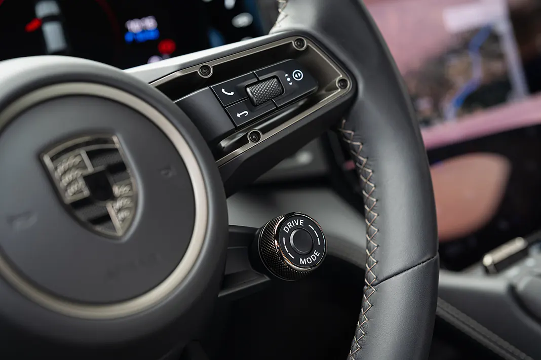 Всі версії мають під капотом франк на 90 літрів, який відкривається з брелока, з салону або рухом руки під логотипом Porsche. Одним дотиком відкриваються й лючки з зарядними портами (з обох боків). Вони ховаються всередину кузова, і хоч це вже не новинка, але все ще дуже ефектно виглядає.