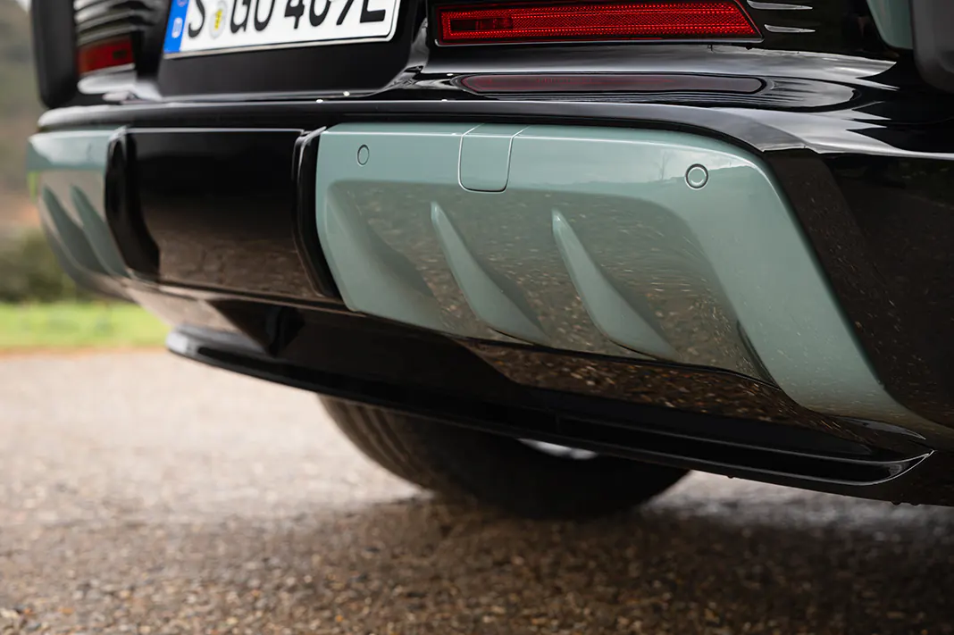 Звісно, в електричного Cayenne немає решітки радіатора, зате є чимало аеродинамічних «фішок», дуже потрібних швидкому електромобілю. Наприклад, в передньому бампері є доволі великі «жалюзі», які закриваються та відкриваються залежно від умов руху та потреб в охолодженні «заліза». На маківці п’ятих дверей є спойлер, який висувається автоматично за високої швидкості, або примусово за бажанням водія. А ще по краях заднього бампера версії Turbo розташовані висувні вертикальні пластини, завдання яких – стабілізувати повітряний потік задля кращої стійкості автомобіля. Це все ж Porsche, не забуваймо!