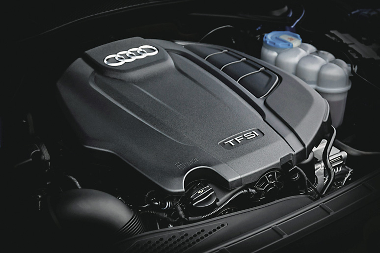 Мы протестировали модификацию с 2-литровым бензиновым мотором мощностью 190 л.с. Прошивка блока управления обеспечивает экономию топлива при движении с неполной нагрузкой. Крутящего момента в 320 Нм 4-цилиндровому TFSI достает с лихвой. Раскручивается бензиновый агрегат вполне прилично, тональность его голоса выше, чем мы привыкли. С хорошо известной 7-ступенчатой коробкой S-tronic с двумя сцеплениями он сработался отлично: в режиме Drive на скорость переключений не пожалуешься, а вот в Sport’е хотелось бы чуть большей расторопности.