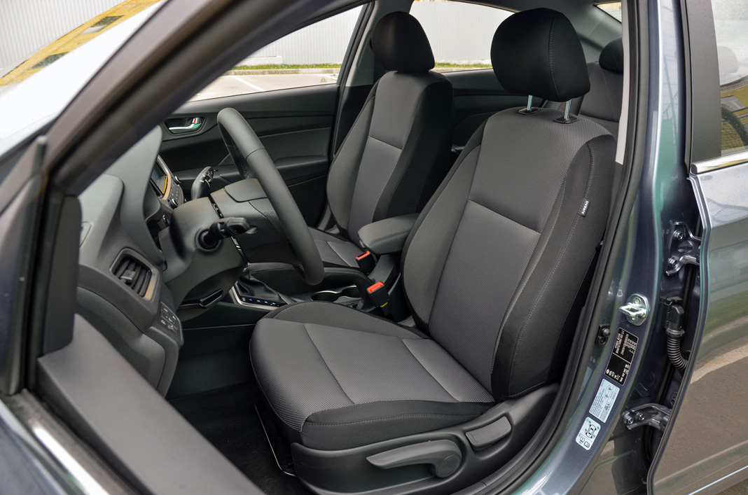 Трехсантиметровый прирост внешних габаритов, как, впрочем, и аналогичное увеличение колесной базы (до 2600 мм), не сильно отразились на салоне. На втором ряду все так же достаточно места для ног, но чуть не хватает по высоте. Зато холодно не будет – Accent впервые предлагает двухступенчатый подогрев заднего ряда (опция).