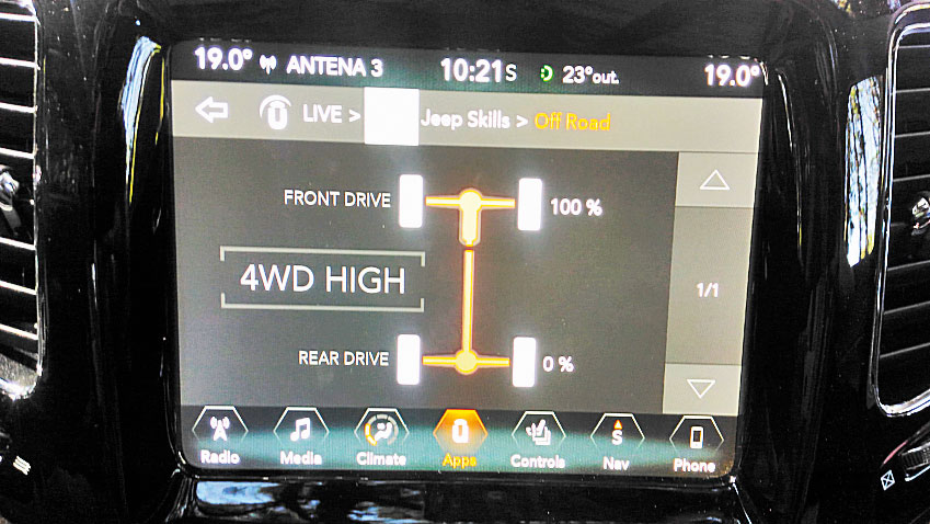 У внедорожной модификации Compass Trailhawk дорожный просвет увеличен до 216 мм (у версии Limited – 190 мм). В селекторе режимов движения Selec-Terrain такой версии кроссовера есть дополнительные кнопки: ассистента спуска с горы, включения режима 4WD Low (на самом деле это принудительное включение первой передачи). Кроме того, есть дополнительный режим – «Камни» (Rock), включение которого (впрочем, как и остальных) анонсируется на цветном экране щитка приборов. Также у Trailhawk иные бамперы, значительно улучшающие проходимость. Например, угол въезда увеличивается до 30° вместо скромных 17° у модификации Limited. Традиционное подтверждение призвания – бедж Trail Rated на переднем крыле. Ну а в интерьере эту версию легко отличить по красным элементам отделки дверей, центральной консоли и щитка приборов. На деле мало кто из соперников сможет тягаться с таким «Компассом» – ни каменистые подъемы и спуски, ни грязевые «ванны» не смогли его остановить во время теста.