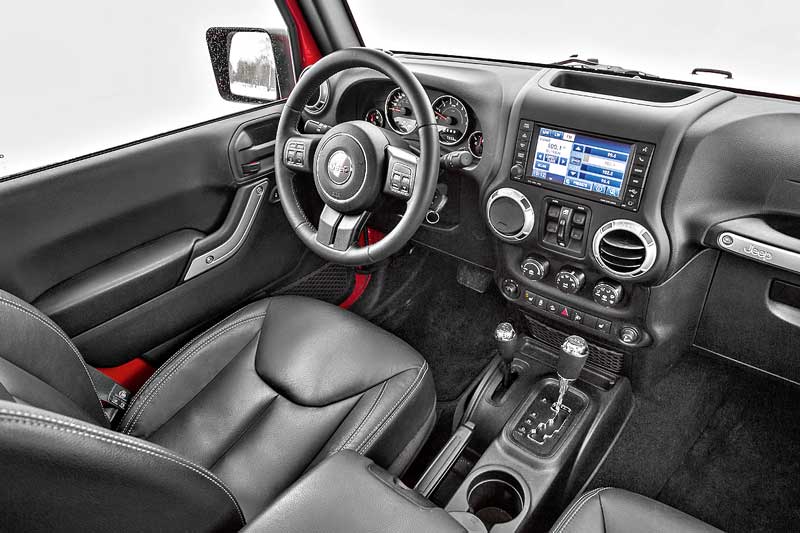 Wrangler в Украине доступен лишь одной комплектации – Sahara. Однако нам удалось раздобыть для теста более интересную версию Rubicon. У нее передаточное отношение понижающей передачи увеличено до 4:1 (против 2,72:1 у Sahara), есть блокировки обоих межколесных дифференциалов и отключаемые стабилизаторы поперечной устойчивости, которые можно «распустить» для преодоления сложного рельефа на бездорожье. В перечень стандартного оборудования для Rubicon входит и пластиковая жесткая крыша. На Sahara это опция. Набор из мягкого и жесткого верха потребует доплаты в любом случае.