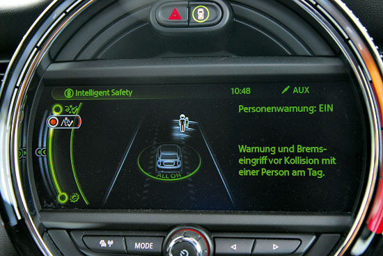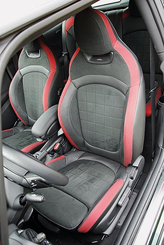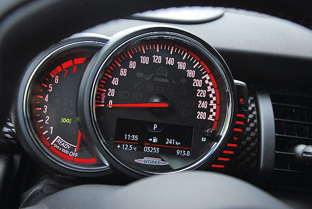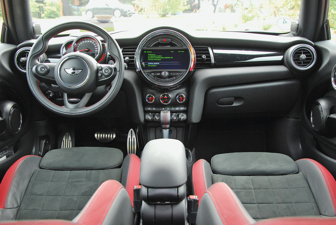 Тем не менее немецкие автобаны и безупречные манеры MINI John Cooper Works усыпили нашу бдительность. Акустически машина комфортна (разве что на высоких скоростях появляется гул в районе передних стоек), кресла имеют выраженную боковую поддержку и множество настроек, включая выдвижную секцию подушки сиденья – не знаю, как людям покрупнее, а мне просто как по фигуре сшито. Небольшие огрехи в эргономике в виде неудобного центрального подлокотника обусловлены аутентичным интерьером. Удобно, красиво, круглые приборы с гоночной атрибутикой – просто красивые декорации, умиротворение и покой.