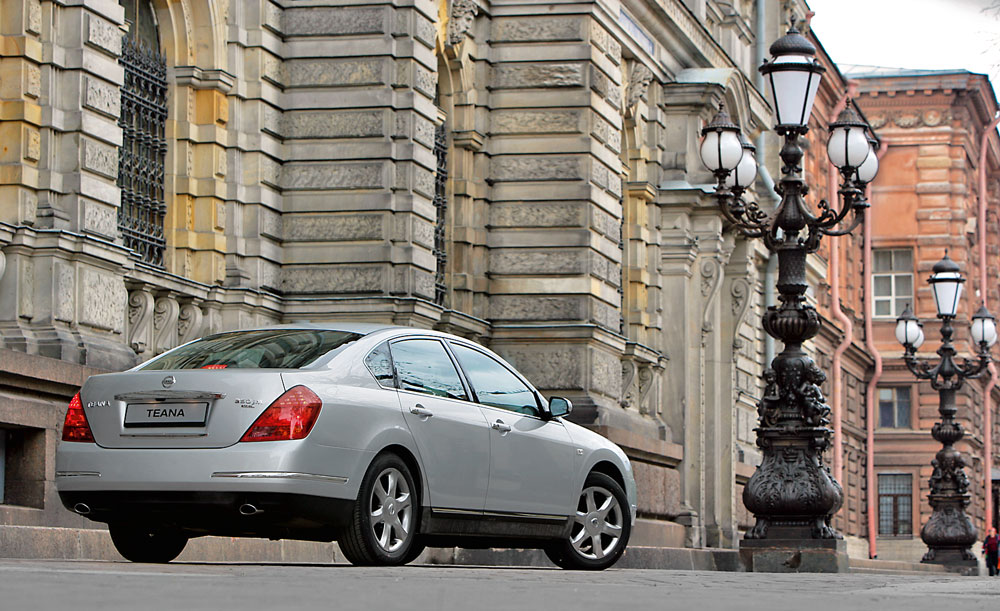 У нас Nissan Teana продавался только с бензиновыми двигателями: 4-цилиндровым объемом 2,0 л (136 л.с.), а также парой V6: 2,3 (173 л.с.) и 3,5 л (245 л.с.). Механические коробки для Teana не предусматривались. Моторы 2,0 л и 2,3 л оснащались 4-диапазонным гидромеханическим автоматом, а 3,5-литровый — вариатором.
